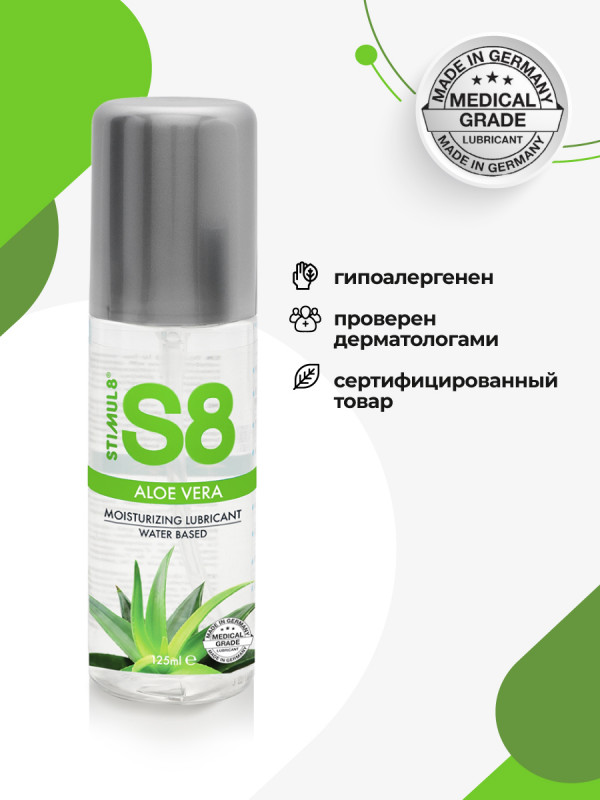 Гипоаллергенный гель с алоэ вера на водной основе без глицерина с невероятно шелковистым длительным скольжением "Stimul 8 Aloe Vera" - идеальное решение для людей с сухой чувствительной кожей и склонных к аллергии!